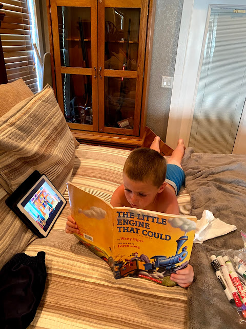 The switch to digital learning was pretty smooth for us. Benny's preschool teachers did daily videos which were so adorable. They would also send out suggested activities to go along with what they were teaching. To be honest, after the first few videos it was like pulling teeth to get that kid to watch them. But he did it. I made him watch every single one! Plus the music and chapel videos too! I needed him to be doing something while I helped the other 2 get started. We also still completed his 100 day project. The other 2 kids were able to get into a pretty good routine. We completed our work in the first couple hours of the day and then it was play time!